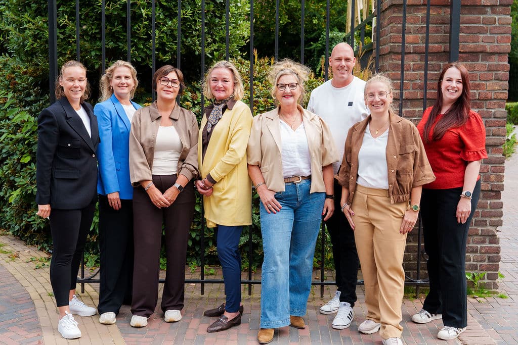 Van links naar rechts: Nathalie Kiel, Maaike Groenhof, Finette Donker, Geer-Anne Vaartjes, Mary Vos, Remco van Bunnik, Daphne Meijer en Dineke Vos. Op de foto ontbreken Liselot de Jonge en Minka Burg.